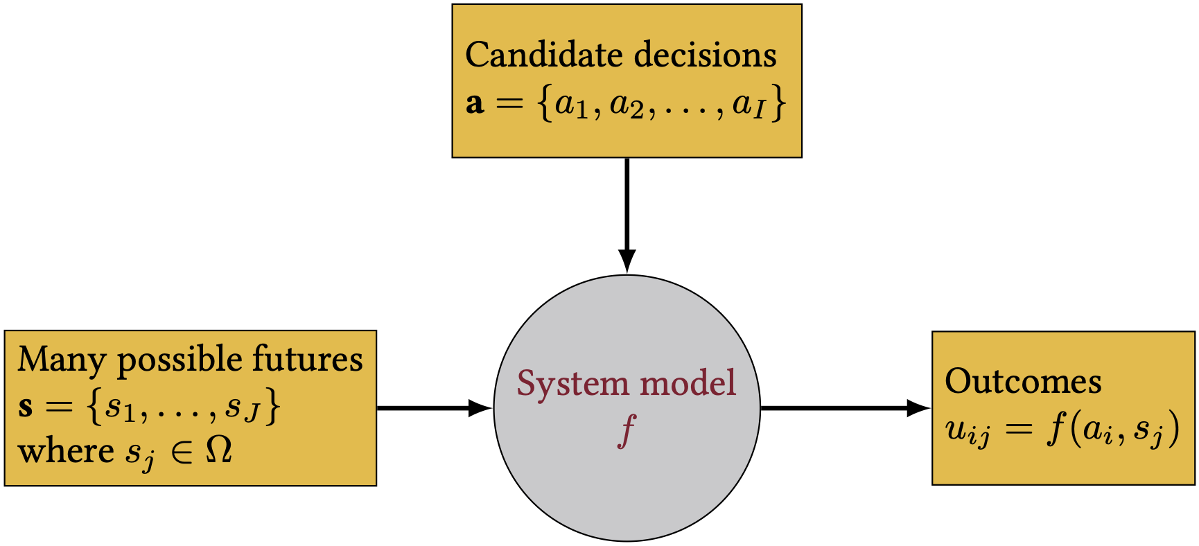 | \(\mathbf{x}\) | Decision variables | \(X\) = dike heightening |